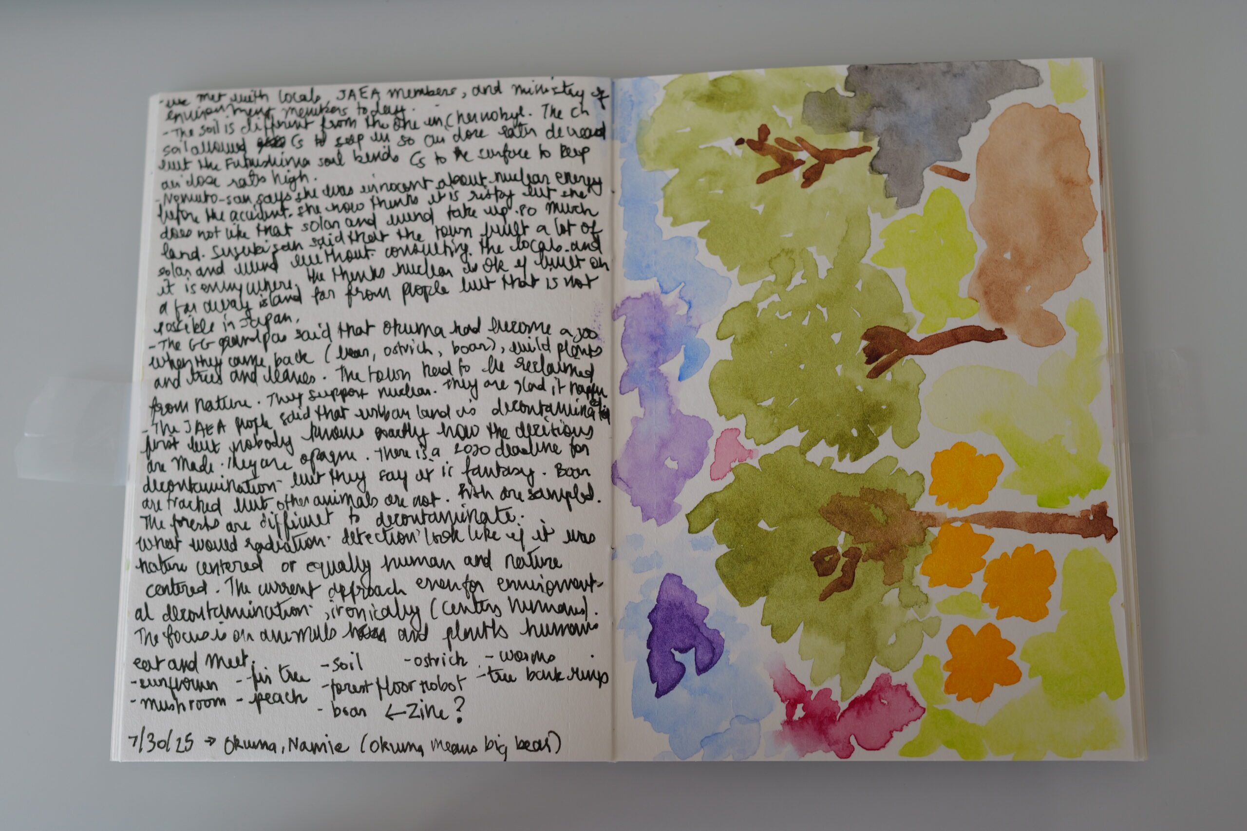 Radiation is part of daily life in Fukushima. Here, the presence of radioactivity — particularly in areas that have not been decontaminated — in the soil, in the grass and plants, even in insects, shapes where people can live (or in most cases, where they can no longer live), where they go (or not and for how long), where and how they work (and what they do for work), and who they can be. Radiation detectors appear next to traffic lights, showing the dose in microsieverts per hour.